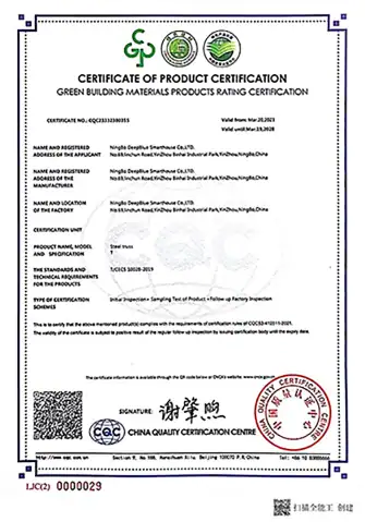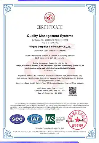 At DEEPBLUE SMARTHOUSE, we take great pride in our certifications and quality control processes. Our mission is to provide our clients with exceptional, sustainable, and future-proof construction solutions. By choosing us, clients are assured of working with a reputable partner who prioritizes quality, safety, and environmental responsibility.
