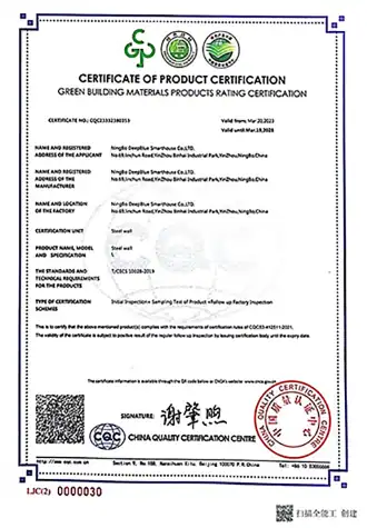 Green building materials products rating certification-Steel wall